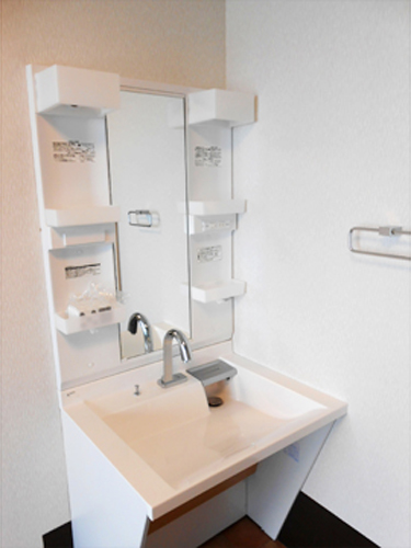 洗面台は車いすの方でもご利用しやすい、低めで広い作りになっております。