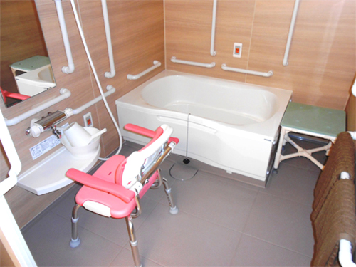 浴槽は家庭のお風呂に近いユニットバスタイプです。必要に応じてスタッフの見守りまたは介助を行います。