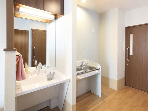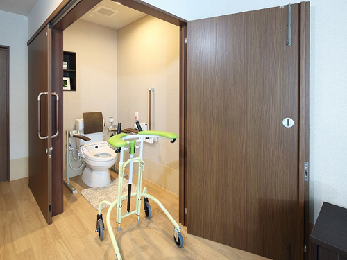 2方向開放型のトイレは介護の必要な方や車いすの方でも使いやすい設計。続きを読む -