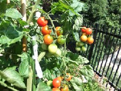 ロビーから見える1階の庭園には、花や植物の他に夏になるとミニトマトなどの野菜がすくすくと育っています。