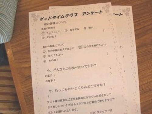 現在、食事・クラブの向上委員会があります。○○に行きたい!食べたい!などゲストの要望をお伺いし実現していきます。