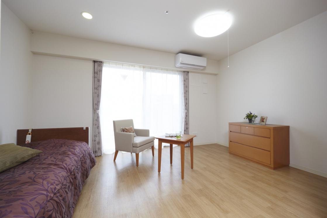 介護用電動ベッドやクローゼット、ミニキッチンなど生活に必要な設備が備え付けられています。(※すべての居室にない設備もございます。)続きを読む -