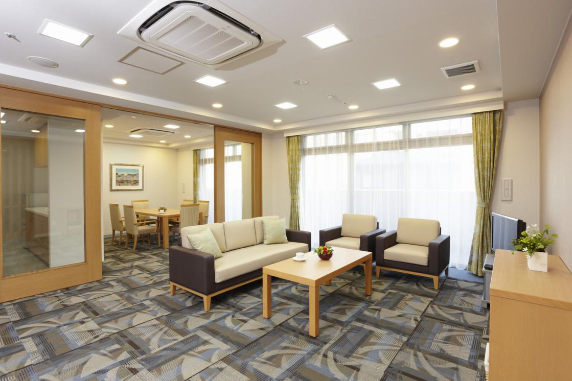 ダイニングルーム兼機能訓練室、ティールーム、ビューティサロン(各種の外部サービス〔利用者実費負担〕を受けるための部屋)、ファミリールーム、機能訓練室、健康管理室兼事務室、浴室