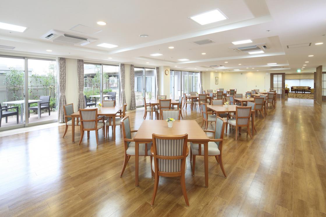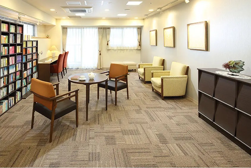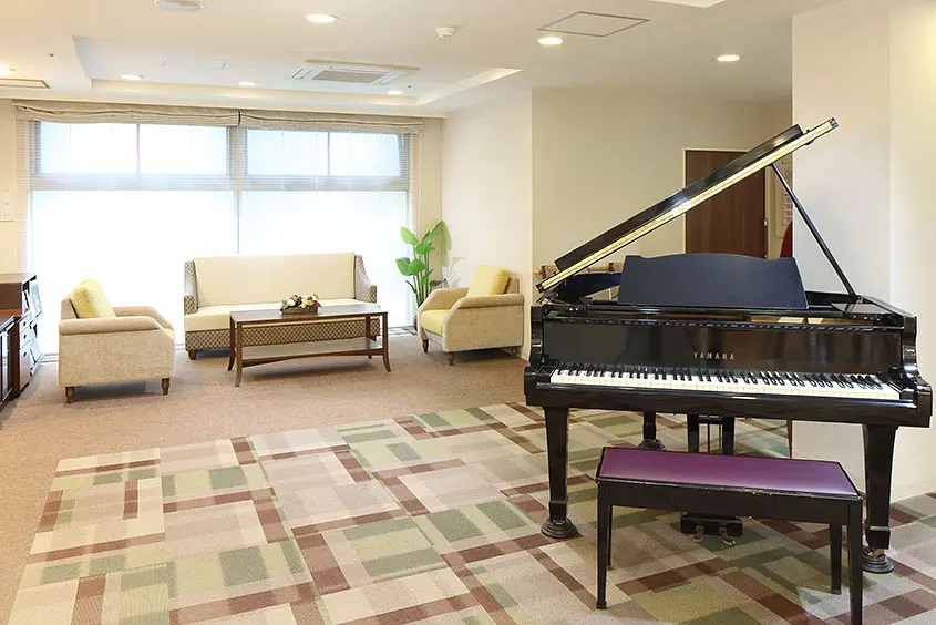 ダイニングルーム兼機能訓練室、ティールーム、ビューティサロン(各種の外部サービス〔利用者実費負担〕を受けるための部屋)、ファミリールーム、機能訓練室、健康管理室兼事務室、浴室