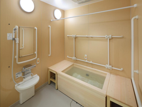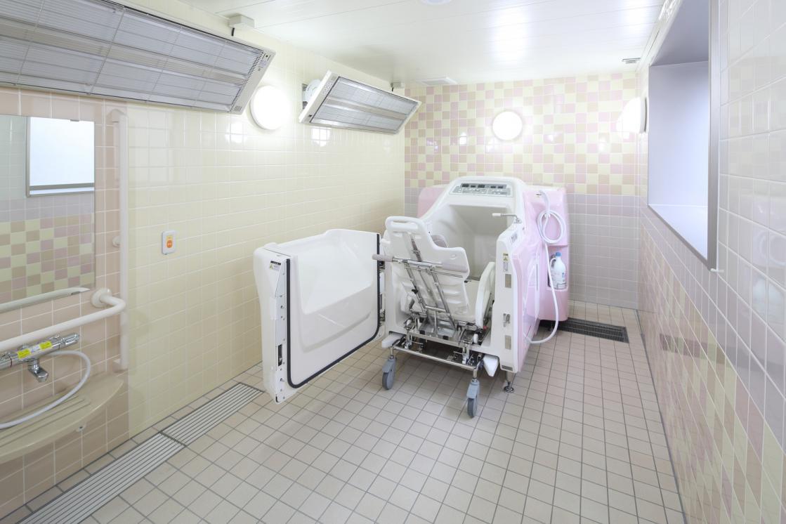 2階の機械浴です。浴槽をまたげない方や車椅子の方でも、ゆっくりとお湯に浸かっていただけます。