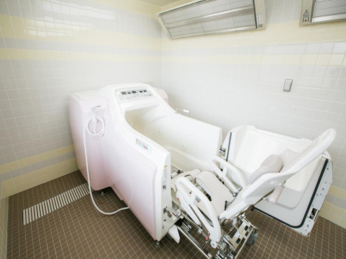 ダイニングルーム兼機能訓練室、ティールーム、ビューティサロン(各種の外部サービス〔利用者実費負担〕を受けるための部屋)、ファミリールーム、健康管理室兼事務室、洗濯コーナー、浴室