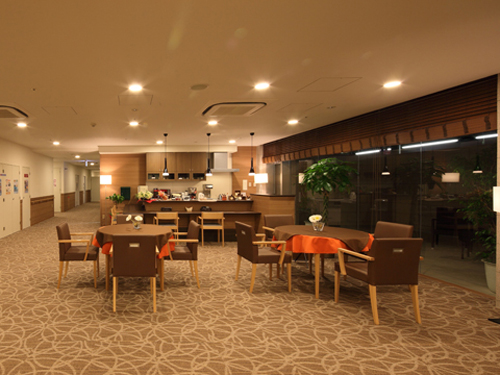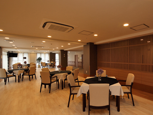 ご入居者様にお食事を召し上がっていただくスペースです。また、レクリエーションやおくつろぎの場としてご利用いただけます。