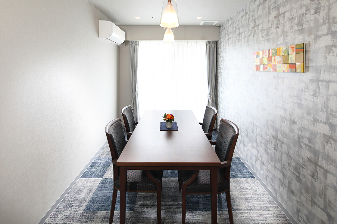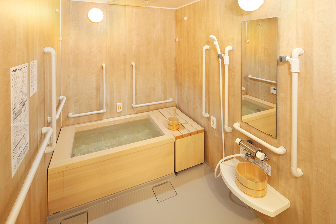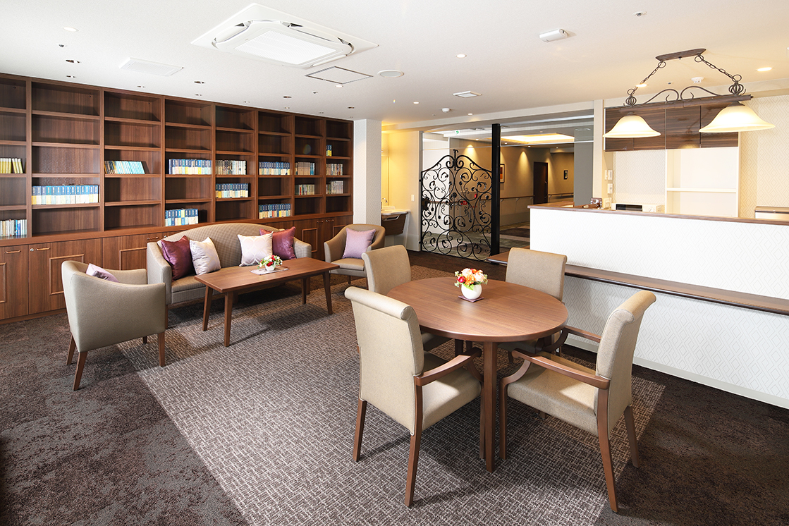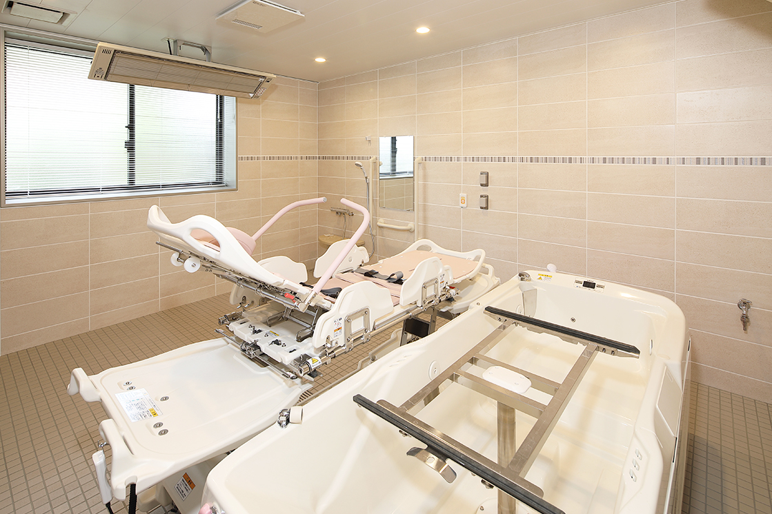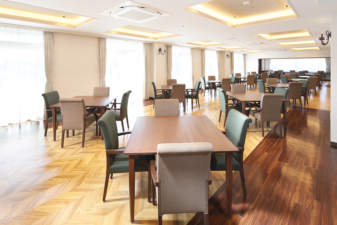 ダイニングルーム兼機能訓練室、ビューティサロン(各種の外部サービス〔利用者実費負担〕を受けるための部屋)、ファミリールーム、健康管理室兼事務室、洗濯コーナー、浴室