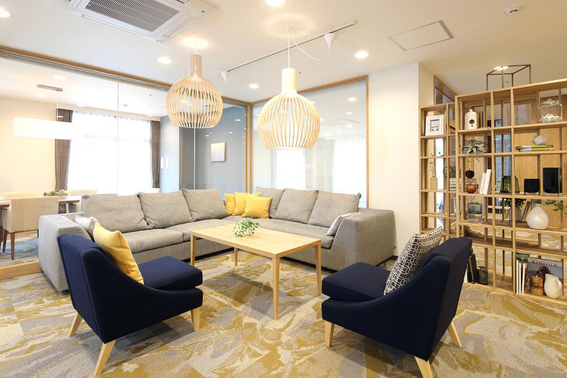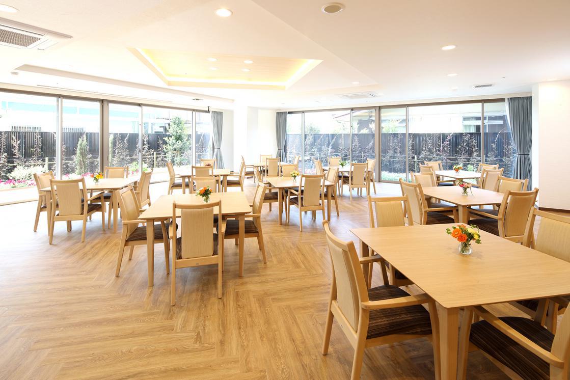 ウッドデッキ、ダイニングルーム兼機能訓練室、ティールーム、ビューティサロン(各種の外部サービス〔利用者実費負担〕を受けるための部屋)、ファミリールーム、機能訓練室、健康管理室兼事務室、洗濯コーナー、浴室