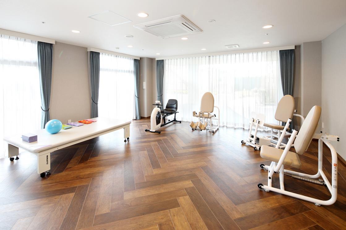 開放的な機能訓練指室には、上肢や下肢の筋力の維持・向上を図るためのマシンを用意しています。ご入居者様同士、声を掛け合いながら自主的にリハビリを継続いただいています。筋力維持のためにお身体を動かしたい方におすすめです。また通常週2回、機能訓練指導員の視点から定期的にアセスメントをすることでお一人おひとりに合わせた福祉用具や身体機能維持のプランをご提案いたします。