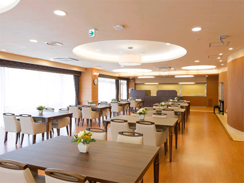 ダイニング(食堂)兼 機能訓練コーナー、理美容室、浴室(個浴、特殊浴)、ケアステーション、洗濯室、ファミリーダイニング、カフェ、ラウンジ、トイレ他