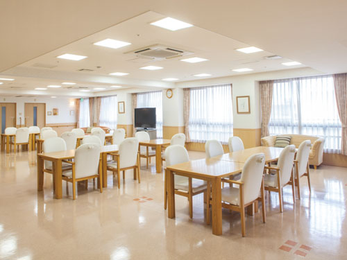 エントランスホール、リビング&ダイニング(食堂)※1、多目的スペース、談話室、ヘルパーステーション、健康管理室、特別浴室、個人浴室、ライトコート、ヘアーサロン(理美容室)、ランドリー、化粧室 ※1食事だけでなくイベント・レクリエーション等、日常生活上多目的に使用。