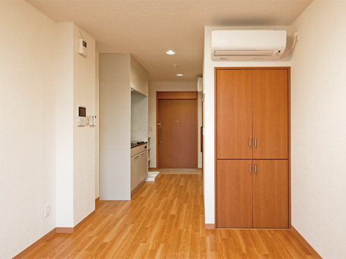 エアコン、ミニキッチンIH、水洗トイレ、洗面台、収納設備、下駄箱、ベランダ、物干し、手すり、緊急通報システム など