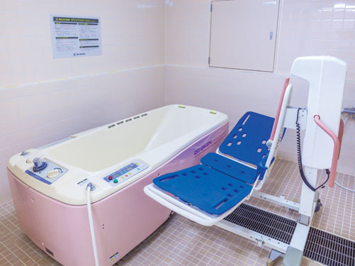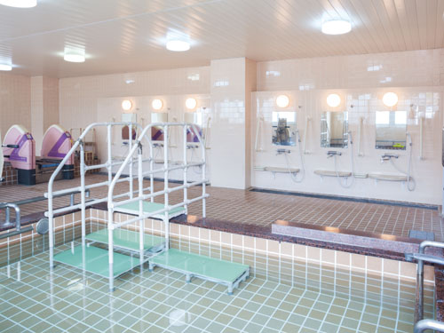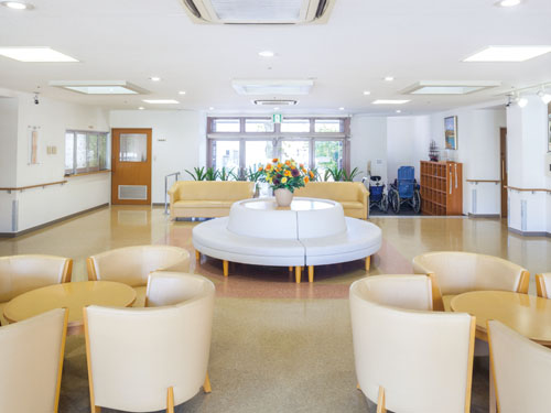 エントランスホール、リビング&ダイニング(食堂)※1、健康管理室兼ヘルパーステーション、一般浴室(車いす対応リフト付)、特別浴室、個人浴室、ランドリー、化粧室 ※1食事だけでなくイベント・レクリエーション・機能訓練等、日常生活上多目的に使用。