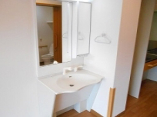 車いすの方でも利用ができる洗面台があります。 鏡は2面鏡となっており収納スペースもあります。続きを読む -