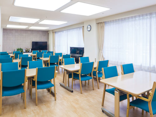 食堂・多目的スペース※1、集中管理室、大浴場、寝台対応リフト付浴室 ※1:食事だけでなく、イベント・レクリエーション等、日常生活上多目的に使用