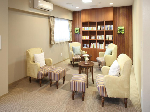 ホーム1階と4階の共用スペースには、リラックスしていただけるよう、コーヒーや紅茶などのお好みに合わせたお飲み物や、ご自由にお楽しみいただける豊富な書籍もご用意しています。またご入居者様が自主的に集まり、1日のできごとを楽しくお話しされたりと、ゆったりしたひとときを過ごされるお姿も。ご家族様やお仲間、お一人でなど、どなたでも気兼ねなくご利用していただけます。思い思いの時間をお過ごしください。