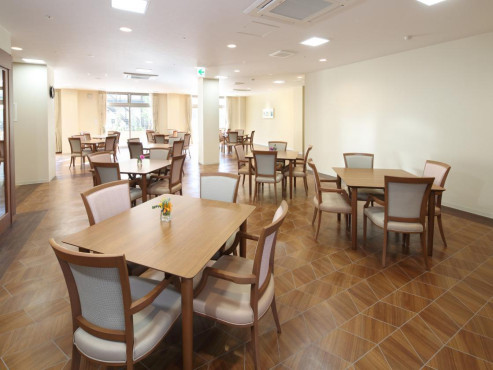 ダイニングルーム兼機能訓練室、テラス、ビューティサロン(各種の外部サービス〔利用者実費負担〕を受けるための部屋)、ファミリールーム、健康管理室兼事務室、洗濯室、談話スペース、浴室