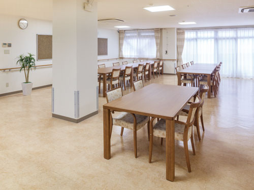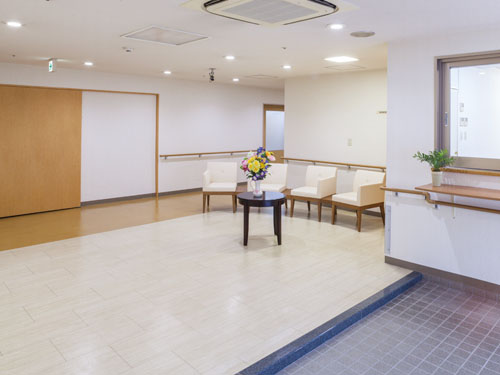 エントランスホール、リビング&ダイニング(食堂)※1、健康管理室兼ヘルパーステーション、特別浴室、個人浴室、テラスガーデン、化粧室 ※1食事だけでなくイベント・レクリエーション・機能訓練等、日常生活上多目的に使用。