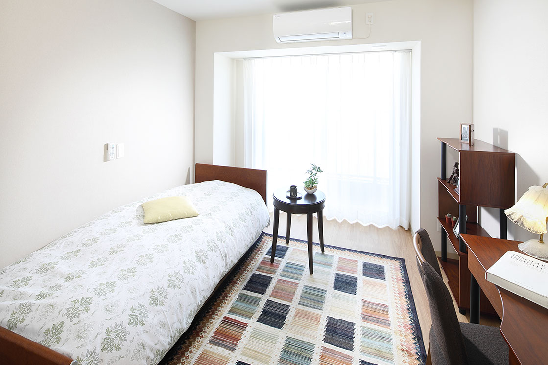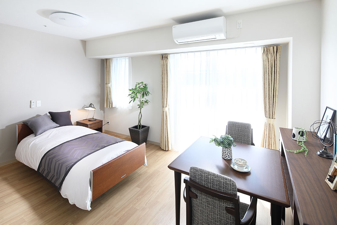 クローゼット、テレビ配線、ナースコール、温水洗浄機能付トイレ、介護用電動ベッド、洗面、電話配線、冷暖房設備 ※すべての居室にない設備もございます。