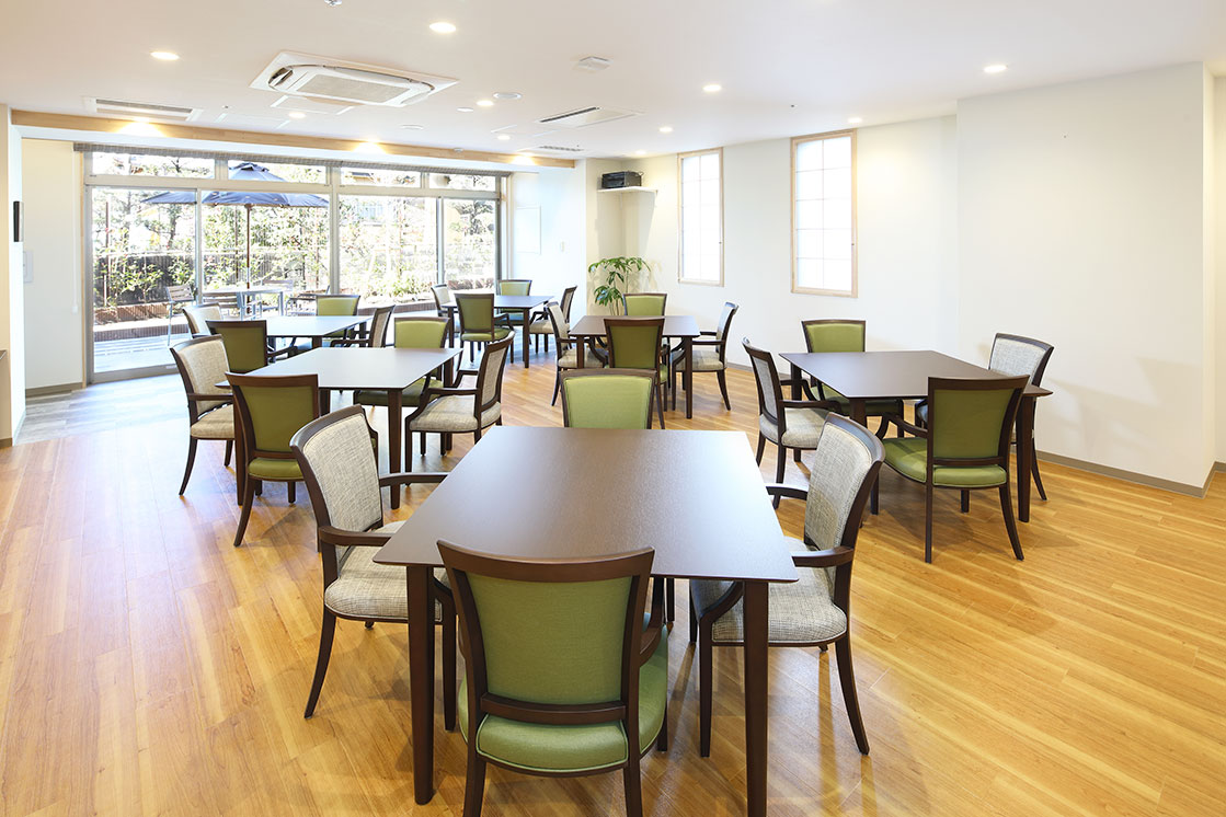 当ホームでは、毎日のお食事を楽しみにしていただけるよう、旬で彩り豊かな食材を取り入れた、できたてのお食事をご提供しています。日々のお食事以外にも、皆様の目の前でメインディッシュを仕上げて提供する、通常月に1度の「プレミアムライブクック」や通常週に1度の「おばんざい」を意識したメニューをご用意。イベント食、スイーツカフェなど、レストランにお出かけになるような特別な時間をお楽しみください。