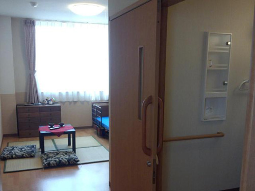 バリアフリー化された居室です。木の温もりを大切にし、ゆったりとお過ごし頂けます。個室内にトイレと洗面所があります。ナースコールも完備され、もしものときも安心です。続きを読む -