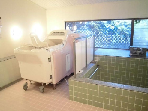 車椅子の方でも座ったままご入浴いただける機械浴と大浴槽です。お身体の状態に合った無理のない入浴をお楽しみいただけます。