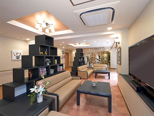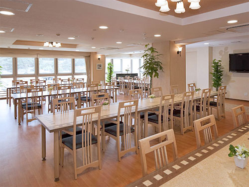 エントランスロビー、食堂兼機能訓練室、カフェ、浴室(個浴・特殊浴)、健康管理室、理美容室、洗濯室、一時介護室、相談室、ラウンジ、マッサージルーム他