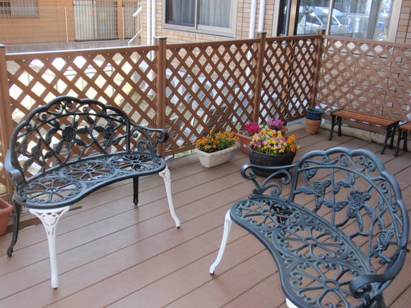 キッチン,スタッフルーム,ウッドデッキ,消防設備