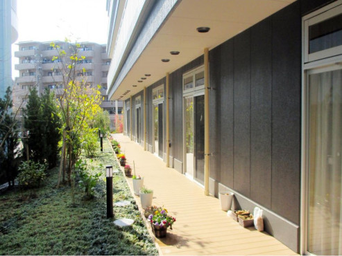 外気に触れながら、四季を感じ穏やかな時間を過ごしていただける空間になっています。時には歩行訓練をされるご入居者様もいらっしゃいます。続きを読む