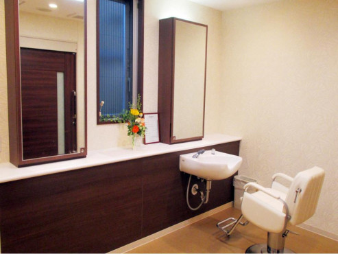 ほぼ毎週実施している有料訪問理容サービスを受ける際にご利用いただけます。カットはもちろん毛染めもパーマも行えます。(各種の外部サービス〔利用者実費負担〕を受けるための部屋)