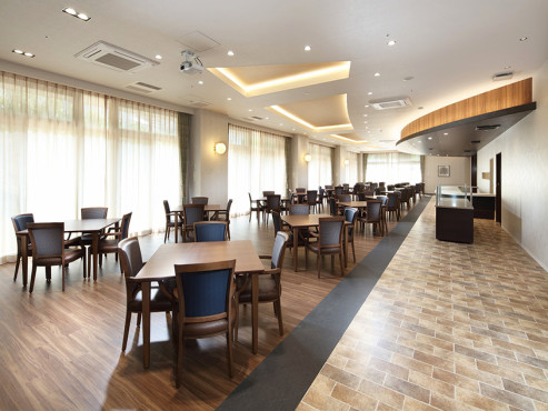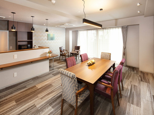 ウッドデッキ、ダイニングルーム、ビューティサロン(各種の外部サービス〔利用者実費負担〕を受けるための部屋)、ファミリールーム、機能訓練室、健康管理室兼事務室、洗濯コーナー、浴室