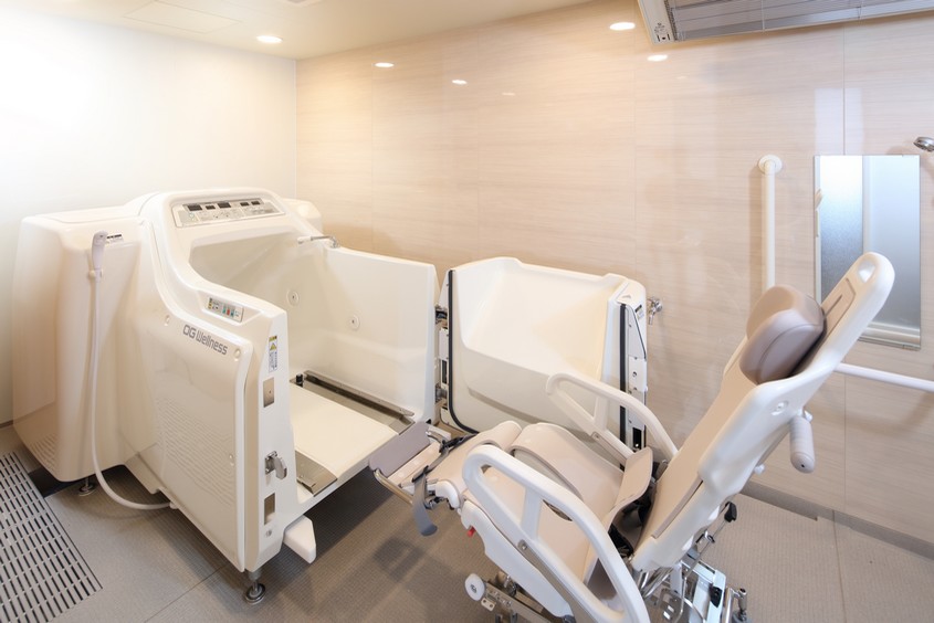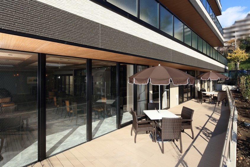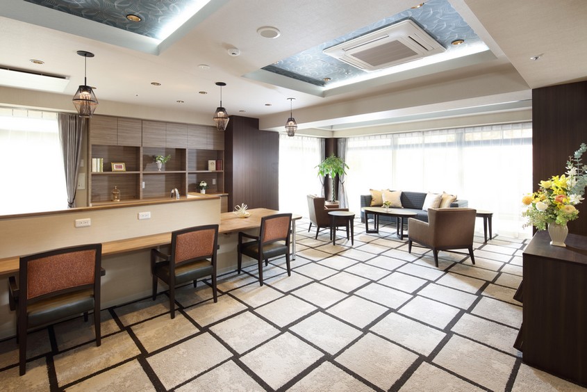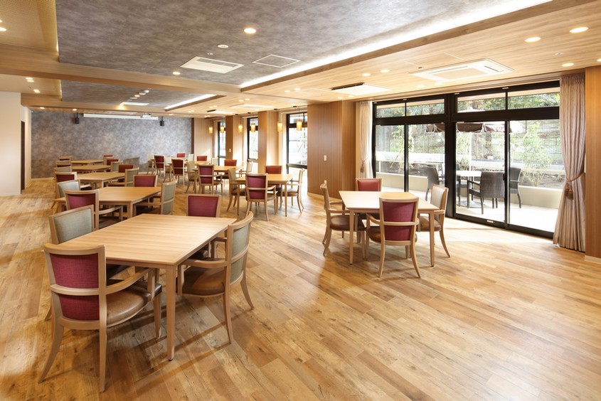 ウッドデッキ、ダイニングルーム、ティールーム、ビューティサロン(各種の外部サービス〔利用者実費負担〕を受けるための部屋)、ファミリールーム、機能訓練室、健康管理室兼事務室、洗濯コーナー、浴室