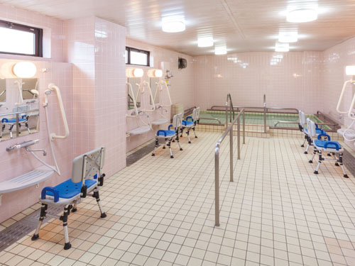 エントランスホール、リビング&ダイニング(食堂)※1、健康管理室兼ヘルパーステーション、一般浴室(車いす対応リフト付)、特別浴室、個人浴室、ランドリー、化粧室、喫煙室 ※1食事だけでなくイベント・レクリエーション・機能訓練等、日常生活上多目的に使用。
