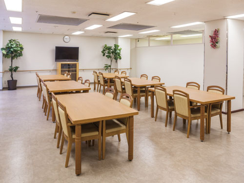 エントランスホール、リビング&ダイニング(食堂)※1、介護予防フィットネススペース、健康管理室兼ヘルパーステーション、一般浴室(車いす対応リフト付)、特別浴室、個人浴室、化粧室 ※1食事だけでなくイベント・レクリエーション・機能訓練等、日常生活上多目的に使用。