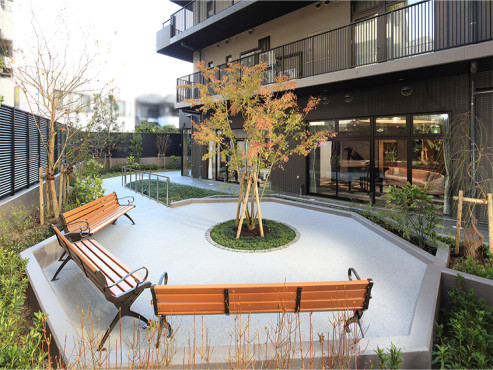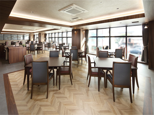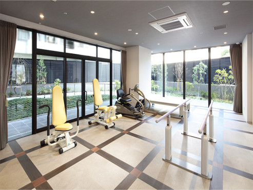 ダイニングルーム、ティールーム、ビューティサロン(各種の外部サービス〔利用者実費負担〕を受けるための部屋)、ファミリールーム、屋上ウッドデッキ、機能訓練室、健康管理室兼事務室、浴室