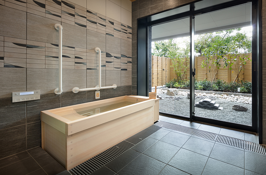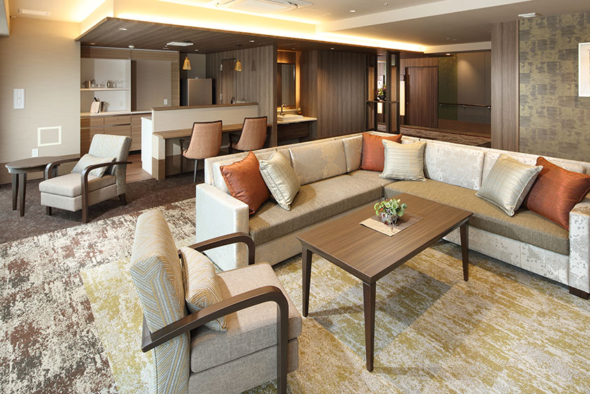 コミュニティルーム、ダイニングルーム、テラス、ビューティサロン(各種の外部サービス〔利用者実費負担〕を受けるための部屋)、ファミリールーム、機能訓練室、健康管理室兼事務室、庭、浴室