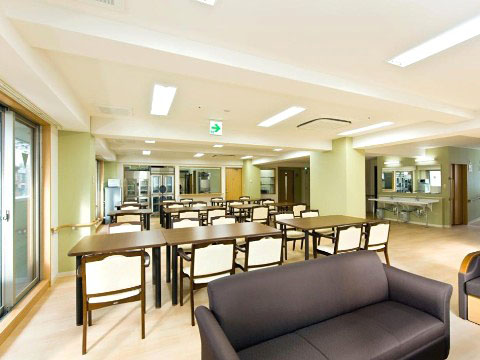 食堂(兼 機能訓練室)、リビング、健康管理室、相談室、美容室、洗濯室、サロン、ルーフバルコニー、浴室(個浴室・特殊浴室)、車いす対応トイレ、