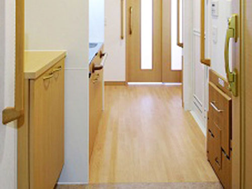 洗面、洗浄暖房便座付トイレ、緊急呼出装置、収納、下駄箱、浴室、ミニキッチン、洗濯機スペース、固定電話設置可能