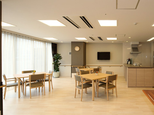 ご入居者様にお食事を召し上がっていただくスペースです。また、レクリエーションやおくつろぎの場としてご利用いただけます。