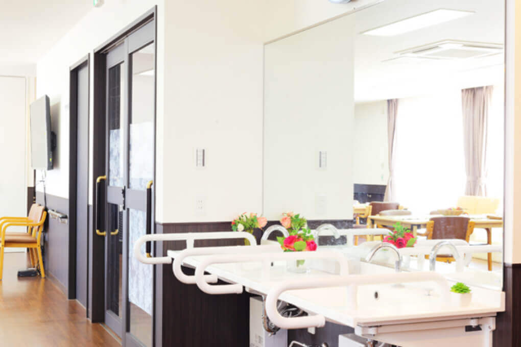 共用スペースにある洗面台はいつも清潔に整えられています。 車いすの方も安心してご使用いただけるよう十分な広さを確保しています。続きを読む -
