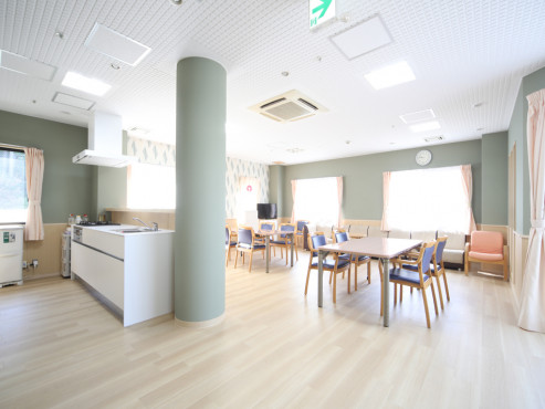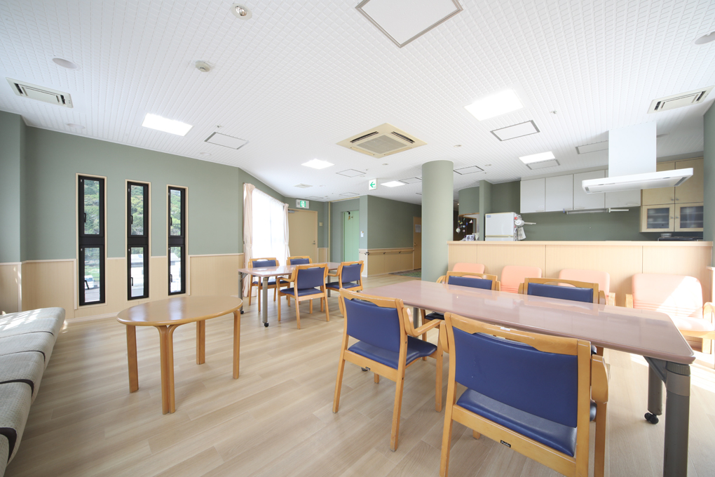 食堂兼談話室兼機能訓練室、キッチン、浴室、脱衣室、洗濯室、トイレ、静養室、相談室兼応接室、事務室、エレベーター、ナースコール
