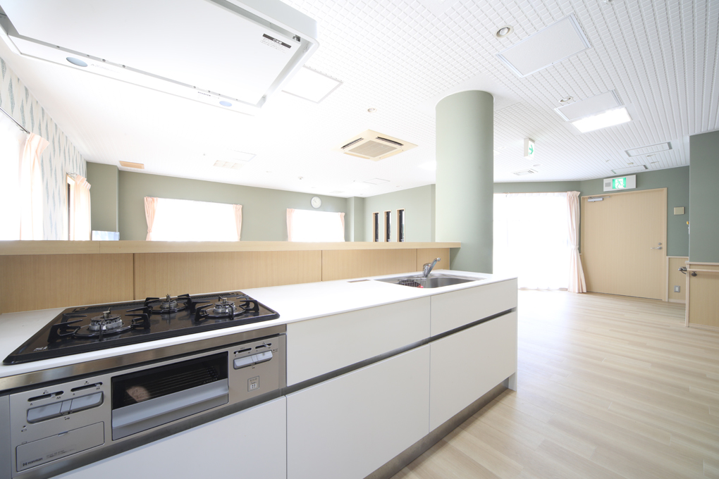 清潔感のある広いキッチンは、ご利用者様と一緒にお料理を作ることも出来ます。