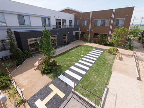 屋外にはスロープ、飛び石、砂利敷き、横断歩道などさまざまな日常生活で想定される庭があり、専門のスタッフが歩行訓練を行います。ガーデンテラスもあり、休日にお友達を呼んでお茶をしたりと存分に太陽を浴びて、高齢者住宅の暮らしを楽しんでいただけます。