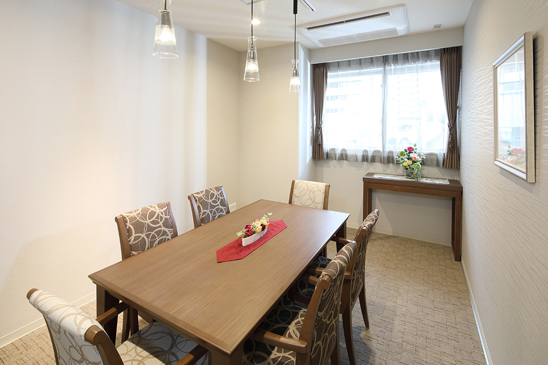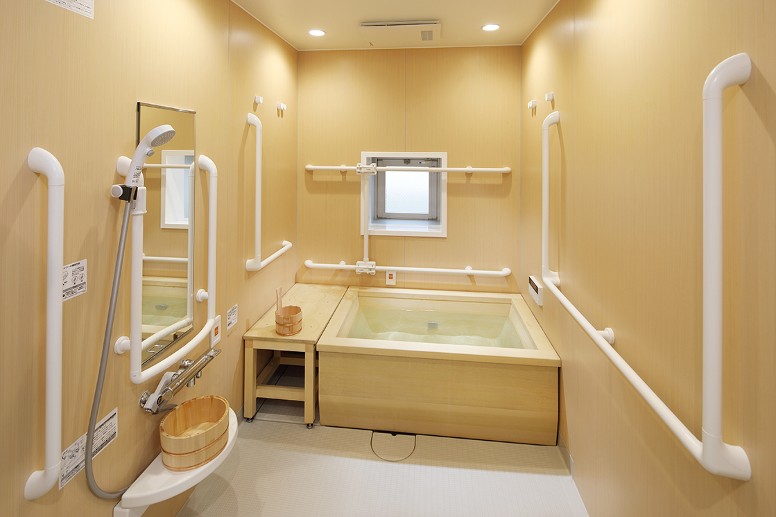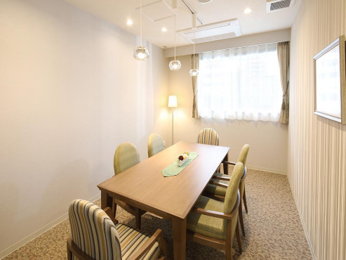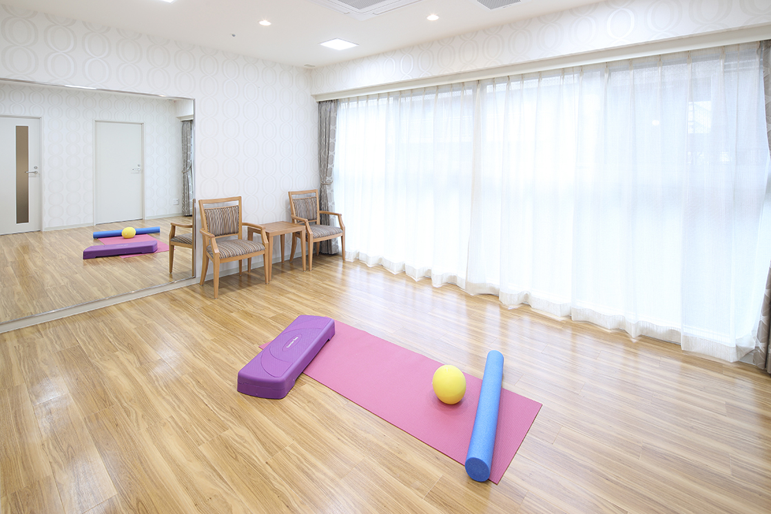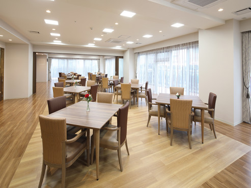 ダイニングルーム、ティールーム、ビューティサロン(各種の外部サービス〔利用者実費負担〕を受けるための部屋)、ファミリールーム、機能訓練室、健康管理室兼事務室、洗濯コーナー、浴室
