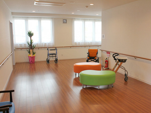 エレベーター、各階浴室(個室浴)、洗濯室、コミュニティリビング、談話コーナー、各階トイレ、各所手摺り、完全バリアフリー、全館冷暖房、スプリンクラー、火災監視設備、防犯カメラ、セキュリティサービス、来客用駐車場