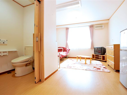 エレベーター、各階浴室(個室浴)、洗濯室、コミュニティリビング、談話コーナー、各階トイレ、各所手摺り、完全バリアフリー、全館冷暖房、スプリンクラー、火災監視設備、防犯カメラ、セキュリティサービス、駐車場(来客用)