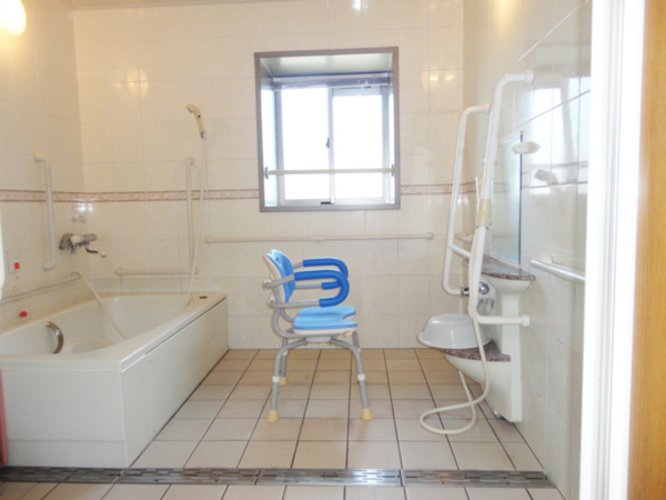 トイレ、エアコン、クローゼット、ナースコール、フローリング、BSアンテナ、フラットフロア、地上波アンテナ、インターネット接続口、照明器具、車椅子対応トイレ、車椅子対応洗面化粧台、鏡、防火カーテン、防災設備、電動介護ベッド、電話回線