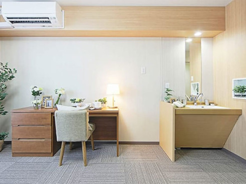安全性に配慮した快適な空間。落ち着いた色調の部屋には、生活や介護を行う上で必要な設備がすみずみに施されています。