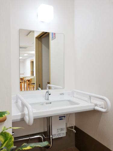 エントランスホール、地域活動拠点、訪問介護事業所、食堂、手洗いコーナー(前室)、車椅子対応トイレ、エレベーター